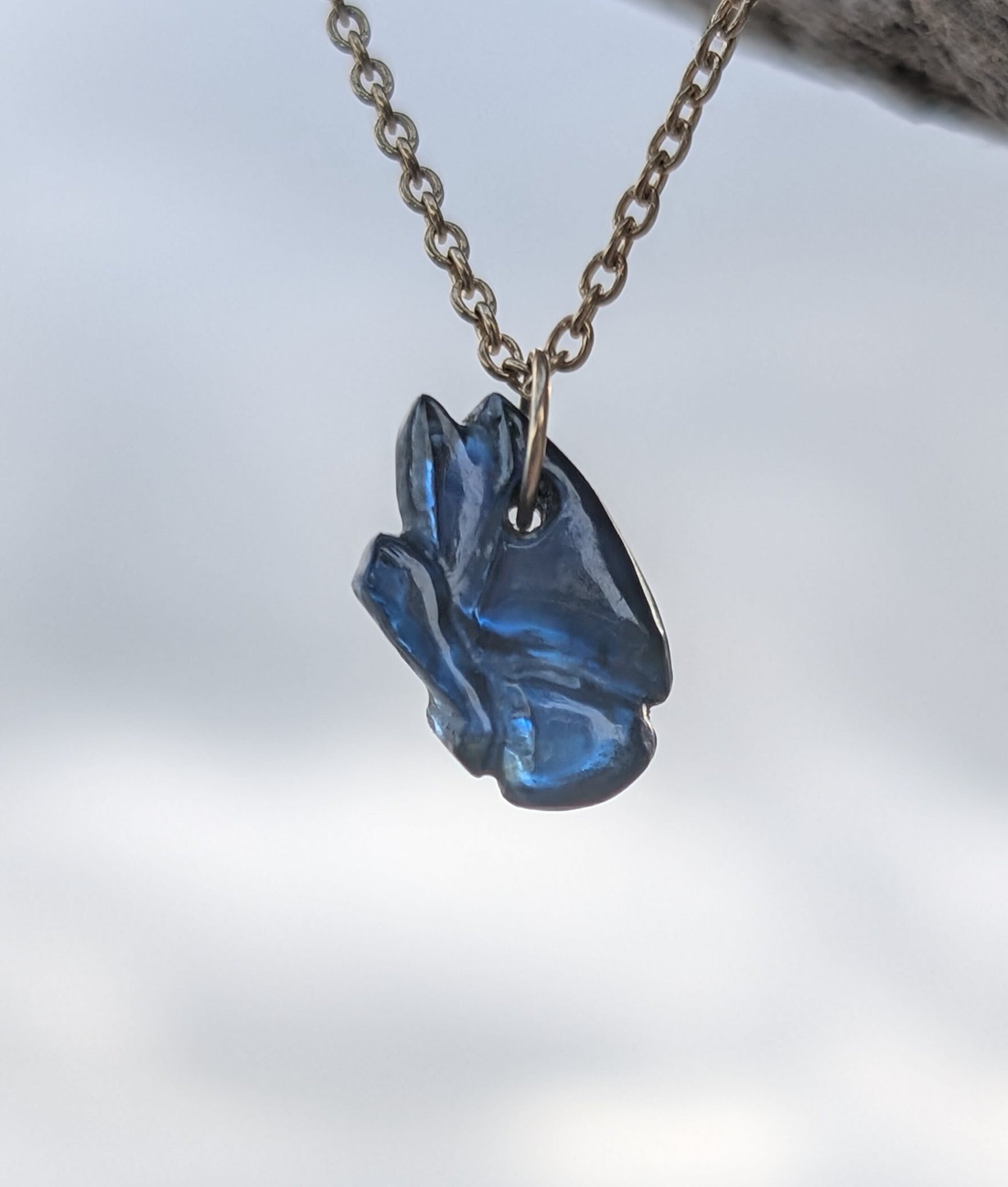 Butterfly Blue Star Sapphire, expertly carved and polished by Kathy Foote, showcasing beautiful star material with a captivating blue hue. Finished with a 9ct yellow gold jump ring, this unique piece highlights exceptional craftsmanship and the natural beauty of sapphire. A delicate and symbolic design, perfect for a pendant or bespoke jewellery creation.