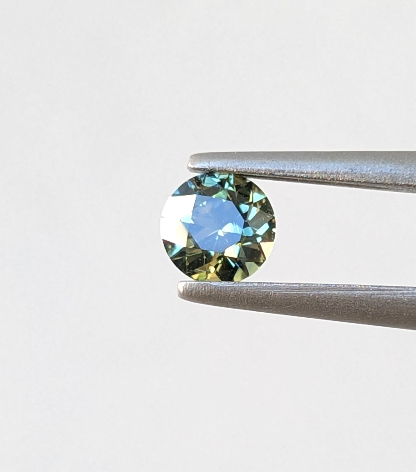 Yellow/Blue Sapphire (Round Cut) – clean and beautifully balanced, showcasing a striking blend of golden yellow and soft blue tones. The round cut enhances the gemstone’s natural brilliance and colour play, creating a vibrant yet elegant appearance. Perfect for fine jewellery or custom designs, this sapphire offers a unique and eye-catching character.